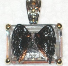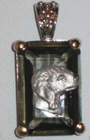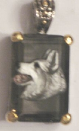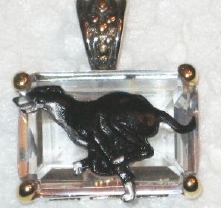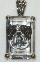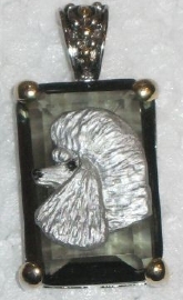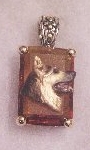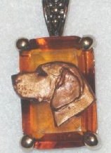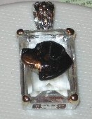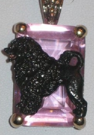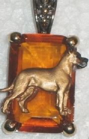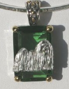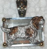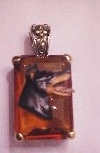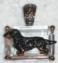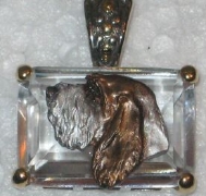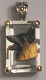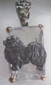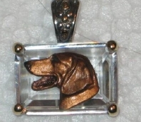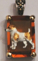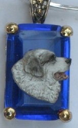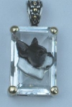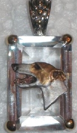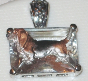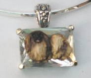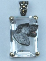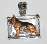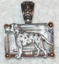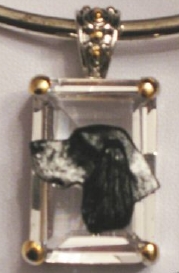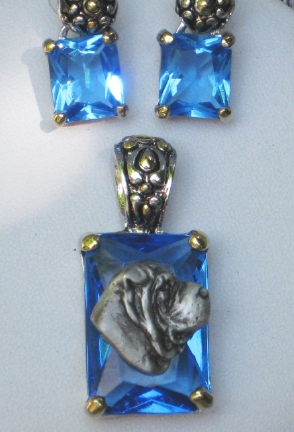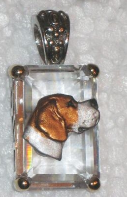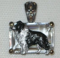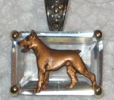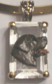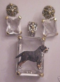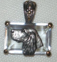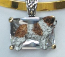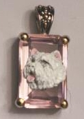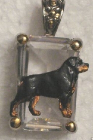 Beautiful Crystal Pendant. Cubic Zirconia stone available in clear, aquamarine, amethyst, deep blue, light blue, emerald green, pink, amber, and smoke and black. Approximately. 1 inch high and 3/4 inch, has a large bale with pretty scrollwork. Dogs are pewter and handpainted. Excellent rendtion of the breed. We offer most AKC breeds and pride ourselves on beautiful breed type with wonderful detail. Matching crystal style earrings are included...makes a gorgeous set. Dogs come in head/full body. Very pretty and unique. Allow 4-6 weeks as artists make each piece individually.